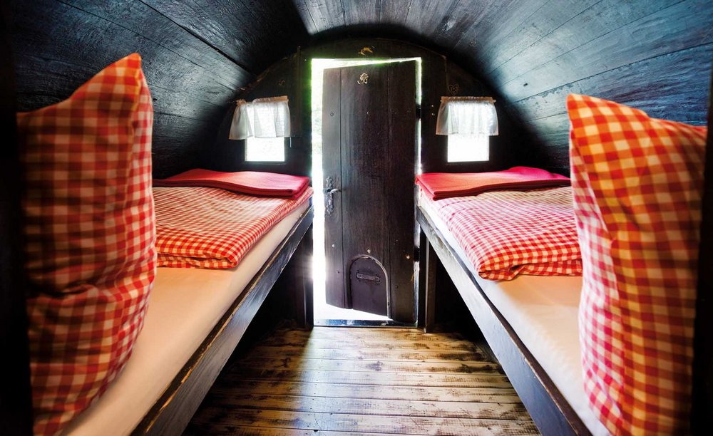 Ob darin hochprozentige Träume garantiert sind? Im Hotel Lindenwirt in Rüdesheim (Etappe 17) kannst Du in einem umgebauten Weinfass übernachten. Auch wenn die Betten rechts und links an den Fasswänden angebracht sind, gute Nachrichten für Frisch-Verliebte: Händchenhalten funktioniert.