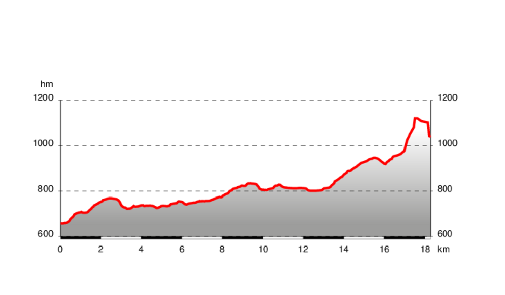 Mehrsprachiger Flyer mit Übersichtskarte, Kurzbeschreibung, Höhenprofil, Etappenangaben (für 5 oder 6 Tagesetappen, Pauschale „Wandern ohne Gepäck“, Kontakt