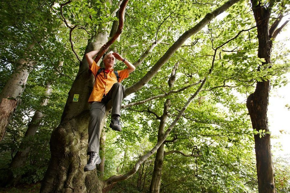 De vaste grond onder de voeten kwijtraken. En dat op een zeer prettige manier. Dat kan in het Baumhaushotel Solling (etappe 4/5). ‘Wij liggen vlak bij de Weserbergland-Weg in het Expo ErlebnisWald', vertelt directeur Stefan Brill. Midden in het bos klauter je 's avonds in een van de negen boomhutten of in een van de drie boomtenten. In een van de grootste bosgebieden van Noord-Duitsland kun je je behaaglijk inrichten in je boomhut. ‘´s Nachts wordt het spannend, als de mensen stil zijn en de dieren in het bos actief worden', zegt Brill. En de sterren-film krijg je er gratis bij. ‘De lichtvervuiling in de Solling is zo gering dat je hier veel meer sterren kunt zien dan op andere plekken. Als je dan 's morgens wordt gewekt door de vogels en er een heerlijk regionaal ontbijt wordt geserveerd waarvan je kunt genieten met uitzicht op een groene omgeving, dan valt dit nauwelijks te overtreffen.’
