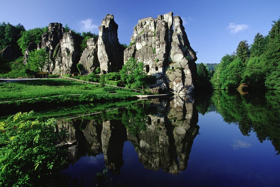 Sie sind die VIPs unter den Steinen, haben es zu den bedeutendsten Naturdenkmälern Deutschlands gebracht: die Externsteine. Nur einen Steinwurf entfernt schaut das Hermannsdenkmal, die höchste Statue des Landes, auf die Wanderer hinab. Mutige können die Perspektive wechseln und mit Stirnlampe und Seilschaft Nachtouren im Kletterpark am Hermanndenkmal unternehmen.. An Höhepunkten mangelt es also wahrlich nicht auf den 226 Kilometern von Rheine nach Marsberg.
