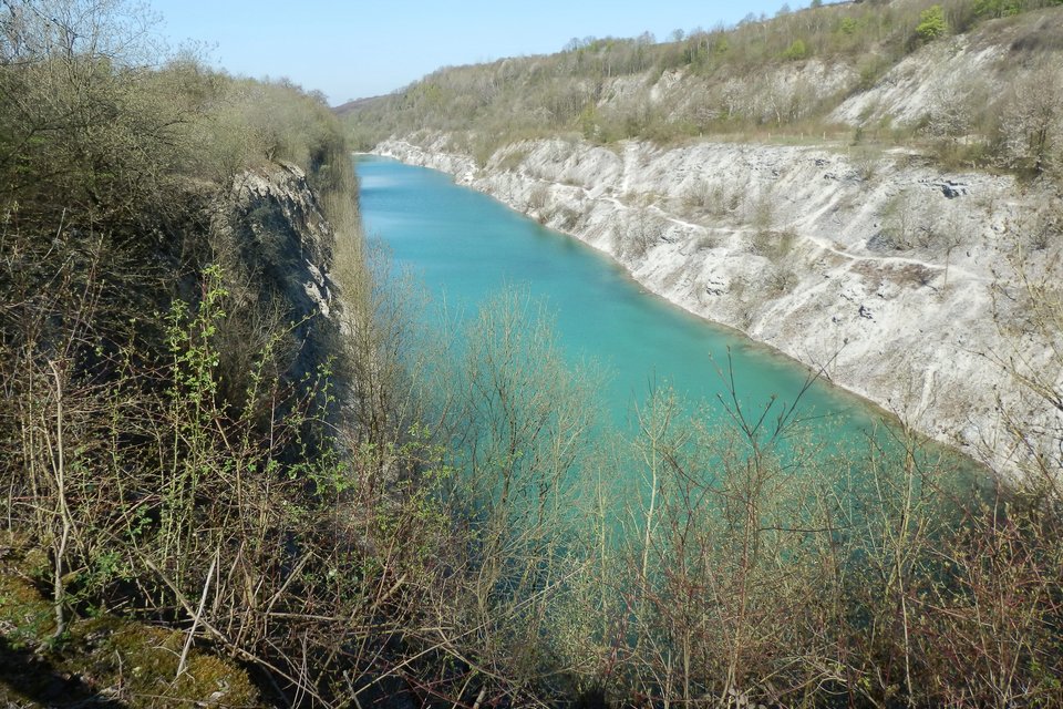 Wenn Du am Spätnachmittag auf Etappe 3 auf der Aussichtsplattform „Teutoschleife Canyonblick“ stehst und auf das irre türkisblau des Sees tief unter Dir blickst, gerät der große amerikanische Kollege in Vergessenheit. Allerdings: Der See und das ehemalige Abbaugebiet stehen unter Naturschutz und sind nicht zugänglich. Aber Schauen darf man!
