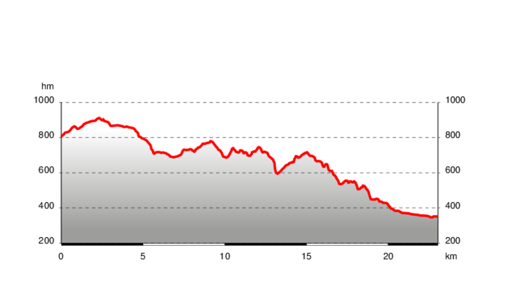 Mehrsprachiger Flyer mit Übersichtskarte, Kurzbeschreibung, Höhenprofil, Etappenangaben (für 5 oder 6 Tagesetappen, Pauschale „Wandern ohne Gepäck“, Kontakt